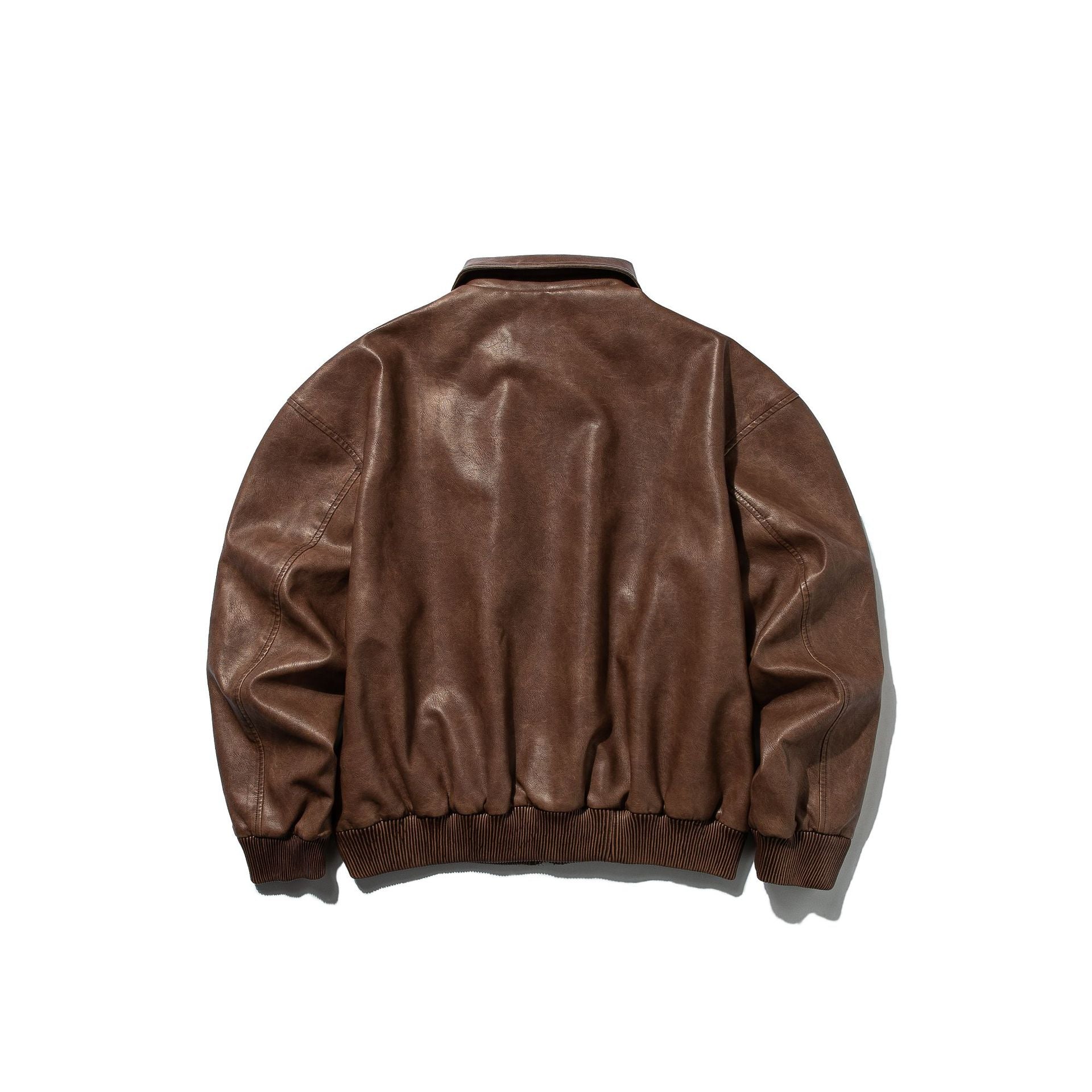 Distressed Loose Casual Turn-down Collar Motorcycle PU Leather Jacket